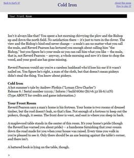 Interactive Fiction created by Andrew Plotkin, about fairy tales. Part of a metapuzzle in the 2011 IFComp.