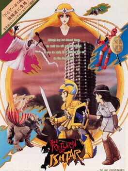 The Return of Ishtar, also known as Ishtar no Fukkatsu, is a two-player action-RPG that follows directly after Namco's Tower of Druaga. Ki and Gilgamesh must escape the Tower of Druaga, fighting through the legions of Druaga that are trying to avenge their fallen master. One player controls Ki and the other controls Gilgamesh. Ki will instantly die if an enemy touches her but she has a ranged attack to keep opponents at bay, while Gilgamesh defeats any enemy he touches. However, Gilgamesh will die if he is forced to take on too many enemies on his own. The aim is to combine efforts to fight through enemies and explore each of the tower's rooms for valuable items.